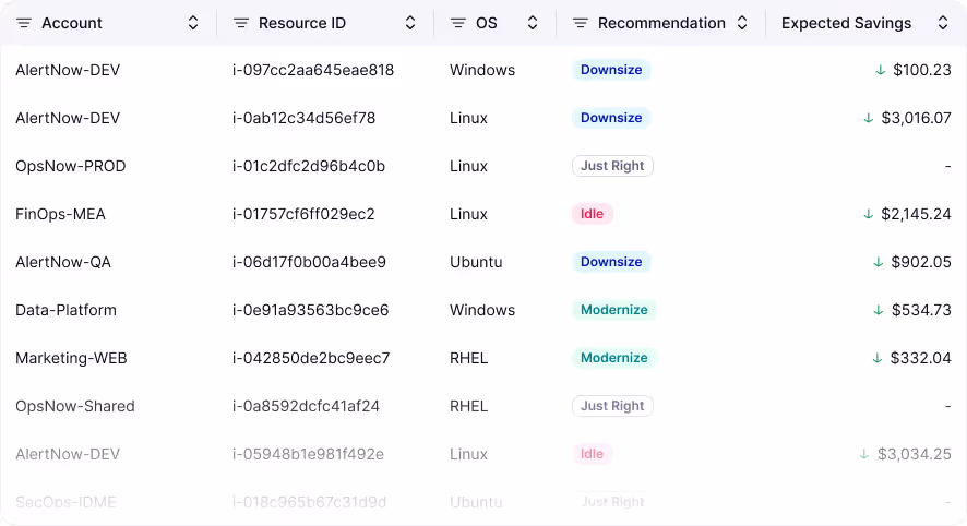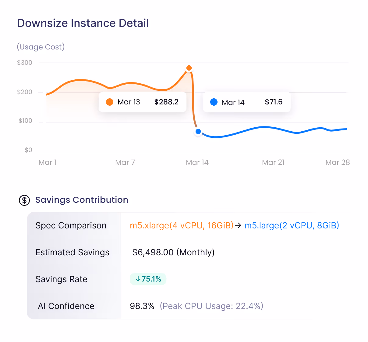 과거 사용량 데이터를 철저히 분석하여, 서비스에 영향이 없는 안전한 리소스에 대해서만 축소(Right-sizing)를 권고합니다